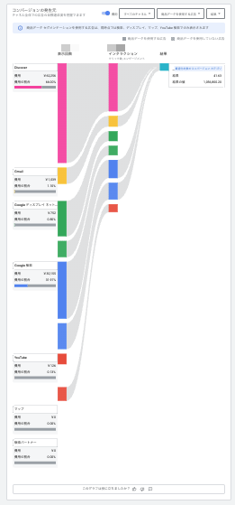 チャネルのパフォーマンスは、どの面でどれだけコストを使っているか、またどれだけ結果が出ているかをビジュアルで確認できるもので、見た目もわかりやすいし、とてもありがたいです。