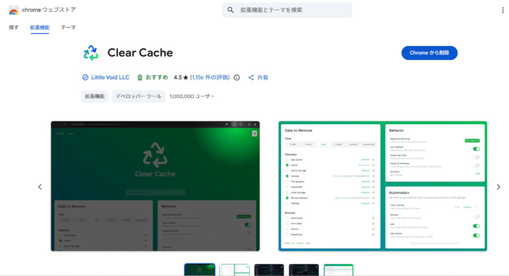 Clear CacheはキャッシュやCookieをワンクリックで削除できる拡張機能です。