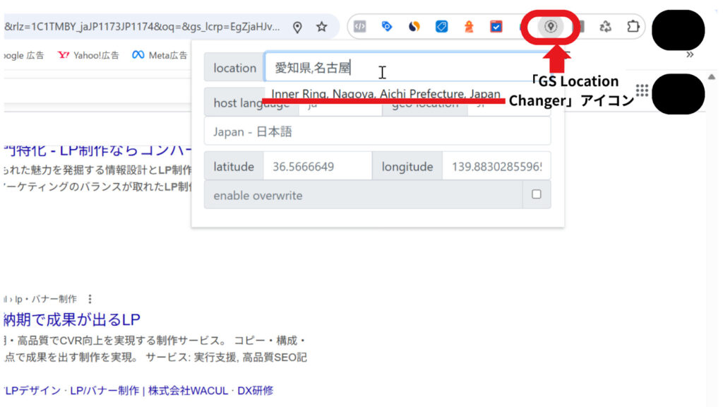 そこで「GS Location Changer」を使えば、まるでその地域にいるかのように、検索結果や広告の掲載状況を確認することができます。