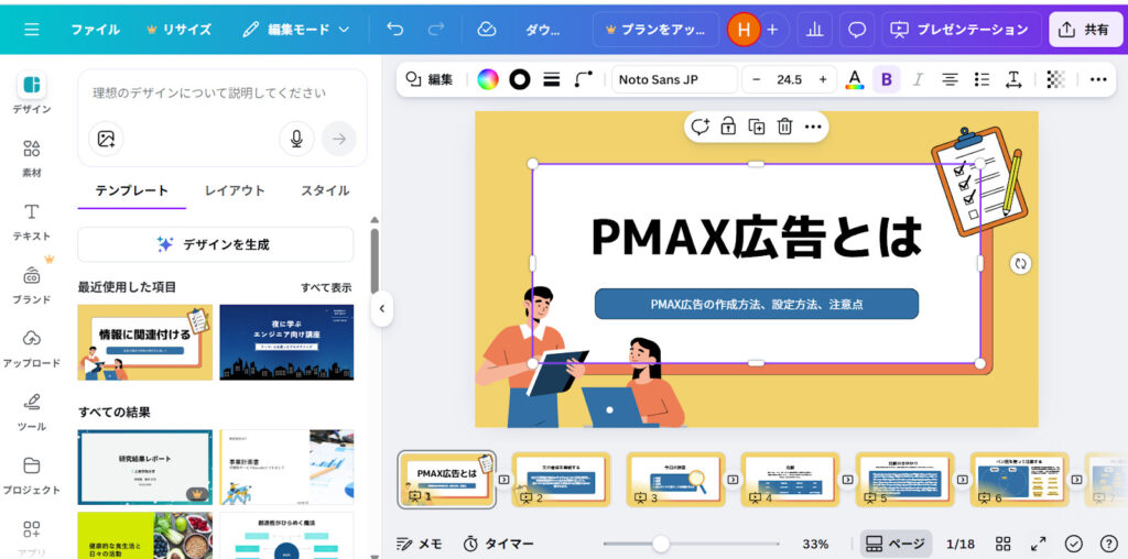Canvaは、専門的なデザインスキルがなくても、バナーや資料を作成できるデザインツールです。