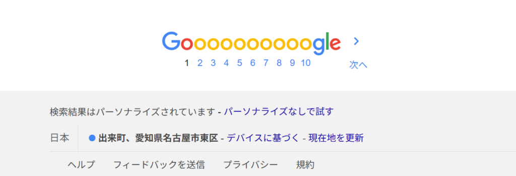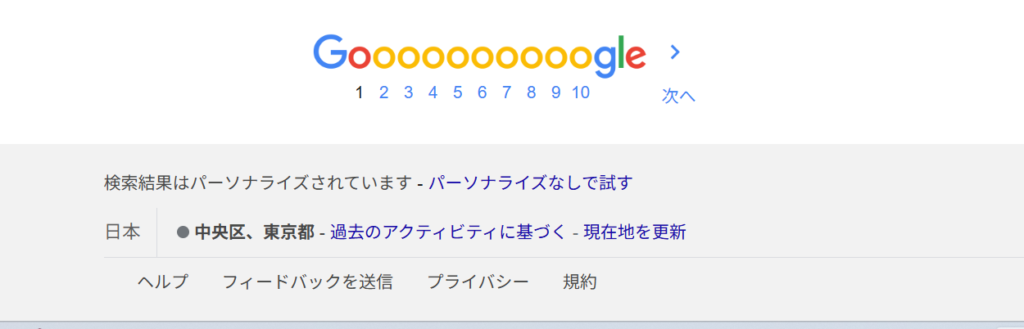 現在、通常通り検索すると私の検索画面は「東京都中央区」となっていますので、「東京」または「東京都中央区」の情報が検索結果に多く出ることになります。