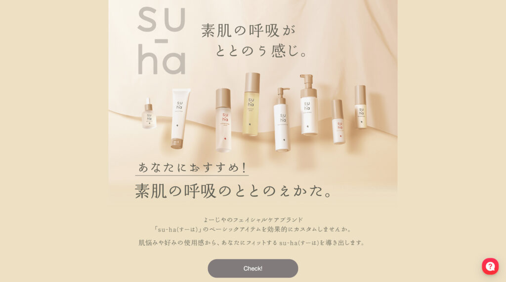 シンプルな質問を通じて肌状態や悩みを可視化し、その結果に応じて最適なスキンケア商品へ自然につなげている点が特徴です。