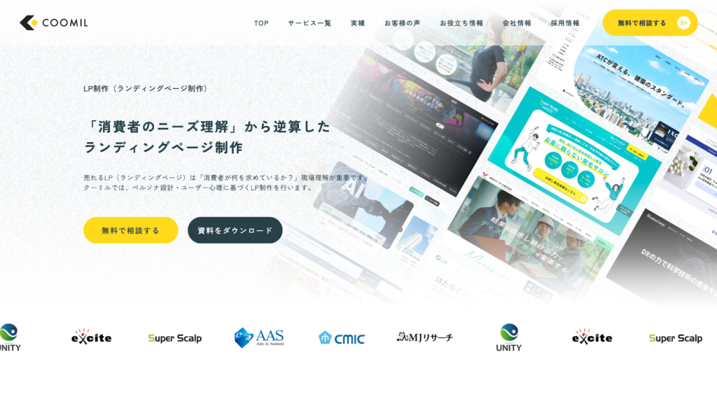また、業界や業種問わず広い実績をもっているため、自社に似たサンプルページも探しやすいでしょう。