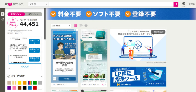 LP制作に慣れていない場合でも、優れたデザイン事例を数多く見ることで、構成や配色、CTAの配置などの基本を効率よく学ぶことができます。ここでは、初心者でも使いやすく、実務の参考にしやすい国内のLPデザインまとめサイトを紹介します。