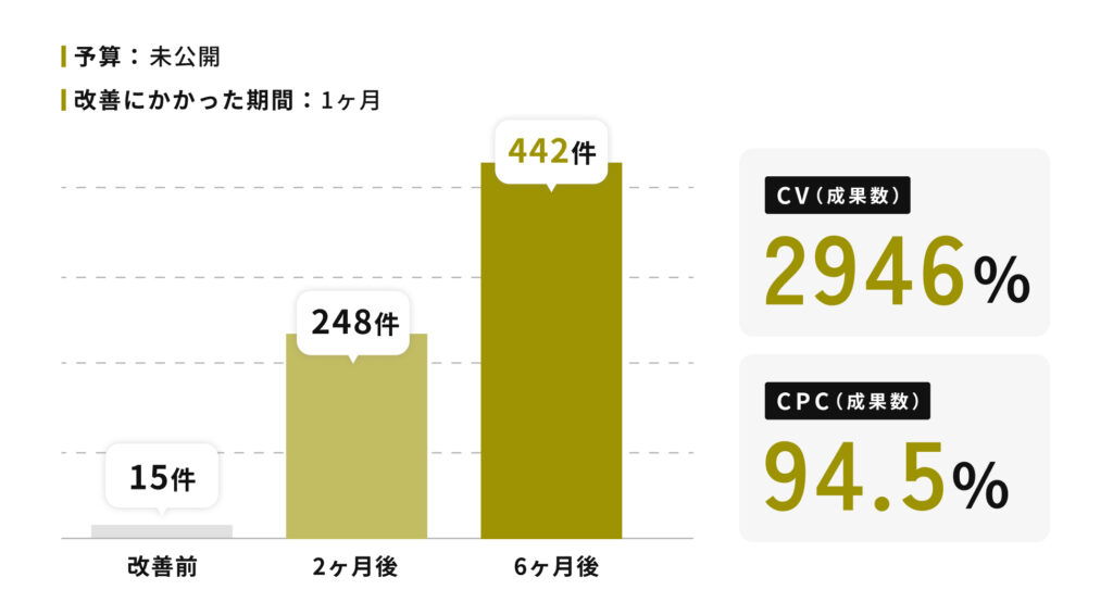 実際に、わずか数ヶ月で成果数を飛躍的に改善した事例があります。